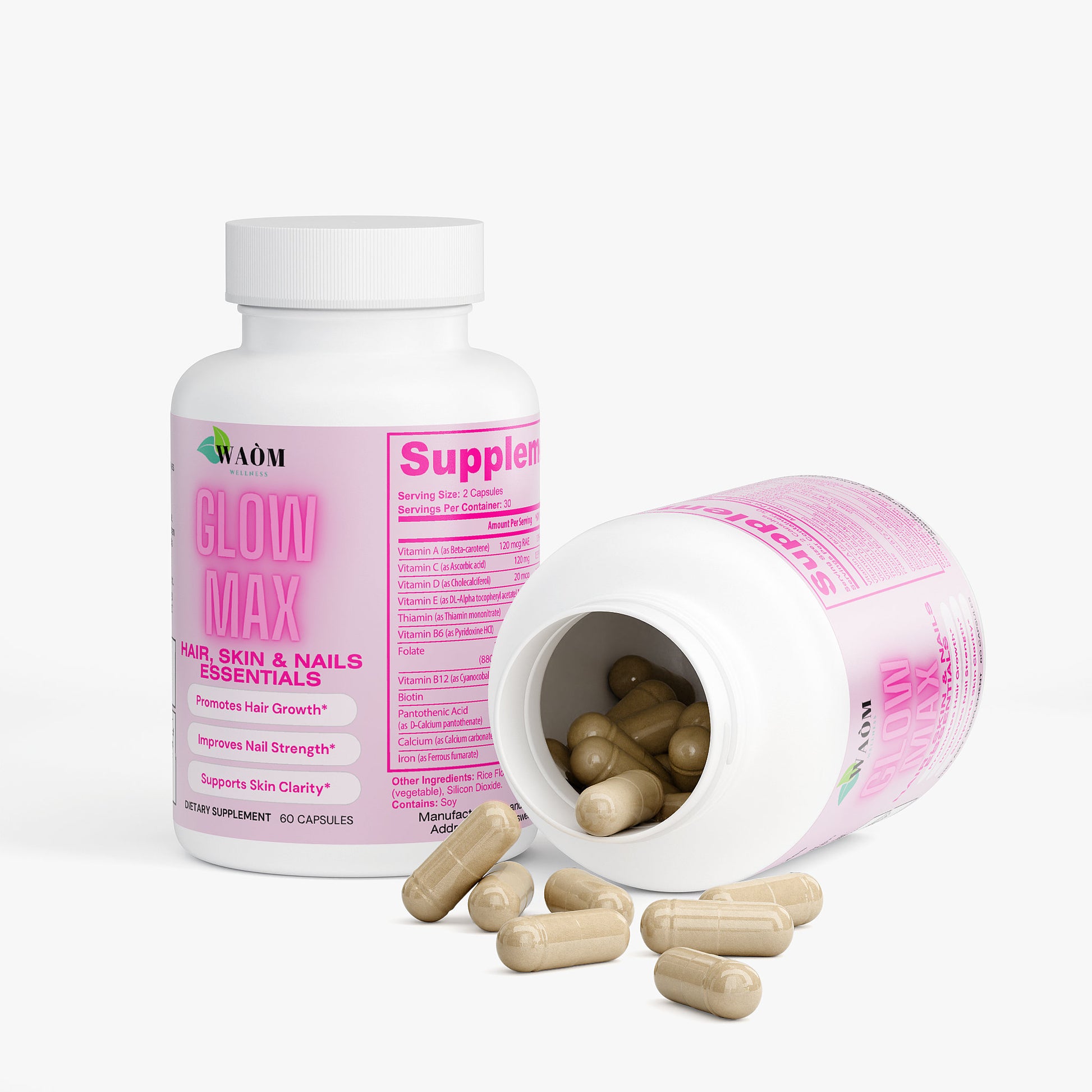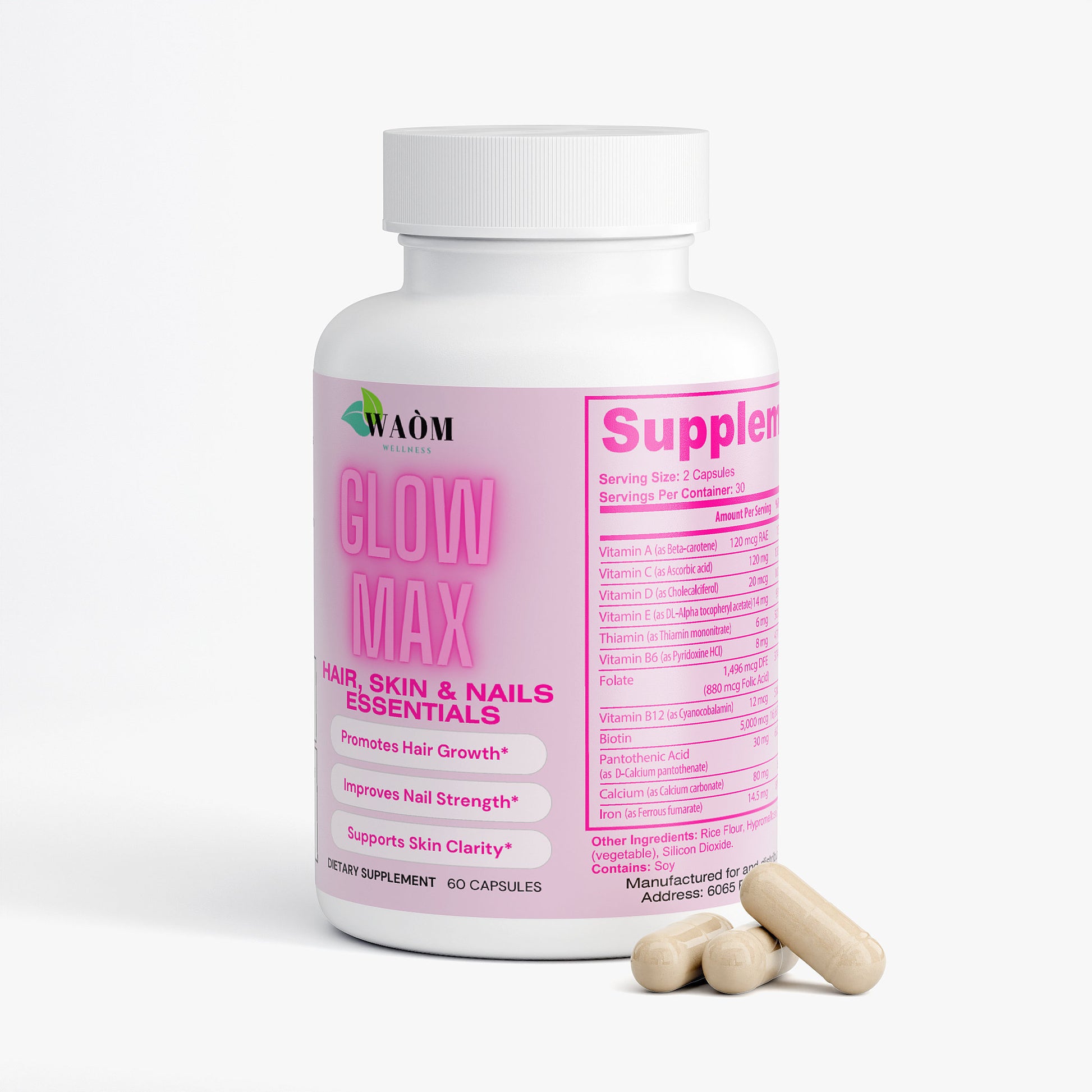 Dreaming of radiant hair, glowing skin, and strong nails? Look no further than our premium supplement designed to give you that enviable natural glow! Packed with a powerhouse combination of Vitamin B6, Folate, Biotin, and more, our formula works synergistically to maintain elastin in your hair, skin, and nails, supporting their health and strength.